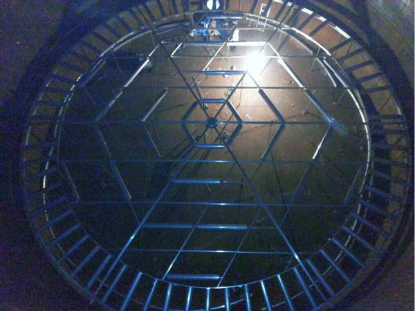 組裝式內(nèi)浮盤采用了特有的蛛網(wǎng)狀六邊形結(jié)構(gòu),與傳統(tǒng)浮盤材料總量相同時,其結(jié)構(gòu)強(qiáng)度高,穩(wěn)定性好。
